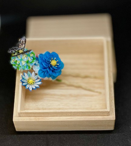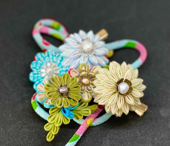 江戸の伝統工芸である「つまみ細工」の手法を用いて様々な材料を使い