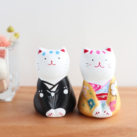 形から作り筆で手描きをした置物等をお持ちします。