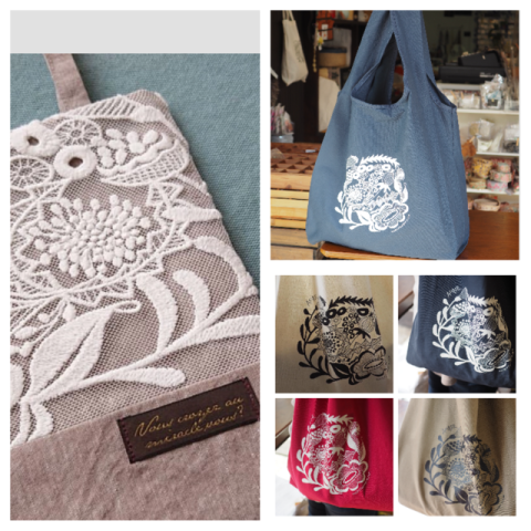 イベントではオリジナルでデザインしたレース、ボタン、生地、バッグを出品します。
