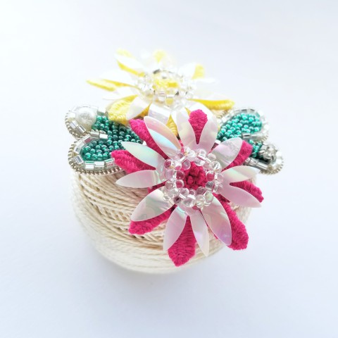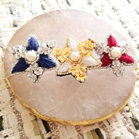 出展日 29日 出展内容 刺繍/アクセサリー 上の大きな画像をクリックすると、フルサイズで画像を見ることができます。 出展者コメント 「ごきげんの花が咲きますように」という願いを込めて、植物をモチーフとしたアクセサリー(イヤリング、ピアス、ブローチ)や飾りを制作しています。モチーフとなる花や葉の形を観察し、幾何学的な図形に落とし込むことで、華やかで上品なデザインを実現しています。今回お持ちするのはクレマチス、ローズ、ガーベラ、ケイトウ、アイビー、ヘレボア(クリスマスローズ)などの植物から着想を得た作品です。当日は刺繍の様子もご覧いただけるようなブースにする予定です。制作は、リュネビル刺繍とマントゥーズ刺繍というオートクチュール刺繍の技法を用いて、糸、ビーズ、スパンコールなど様々な素材を組み合わせて行っています。きれいな色やキラキラしたものを身に着けることで、心がふわっと明るくなるような瞬間を作り出していきたいと考えています。 SNS URL https://www.instagram.com/sweetflowers_ig/ https://twitter.com/sweetflowers_tw Creema https://www.creema.jp/c/sweetflowers
