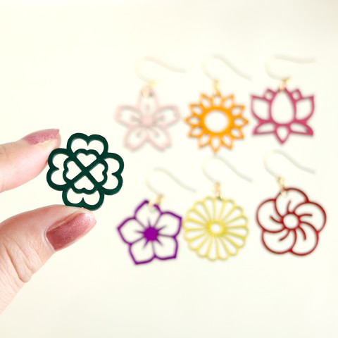 出展日 27日/28日/29日 出展内容 アクセサリー/文具 上の大きな画像をクリックすると、フルサイズで画像を見ることができます。 出展者コメント 身につけることでいつも「季節」を感じられるアクセサリーを制作しています。アクセサリーパーツの会社に勤めていた経験をいかし、レーザーカッターで仕立てたオリジナルパーツが特徴です。Clover4uならではのこだわりと繊細な「季節」の彩りをぜひ身につけてみてください。手にすることで、身につけることで、大好きな季節のあの風景、あの花、あの香り、あの日を思い起こすような、まるで四葉のクローバーを見つけたときのような…季節が連れてくる小さな幸せを日常で感じていただきたい。そんな思いで制作をしております。今回は、季節の草花のモチーフのピアス(イヤリング)をメインにお持ちします。好きな季節をもっと好きになったり、新しい発見があったり、Clover4uのアクセサリーがあなたの日常を少し彩れたら幸いです。 ホームページ SNS URL https://twitter.com/happy_clover4u http://instagram.com/happy_clover4u/ minne https://minne.com/@clover4u