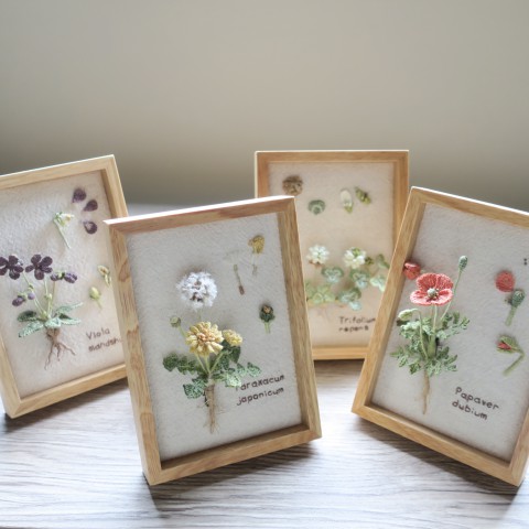 花のかたち、葉っぱのかたち。おしべやがく。図鑑のように、細かいところまでていねいに作っています。