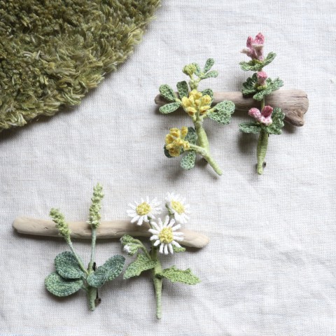 出展日 29日 出展内容 小物/アクセサリー/インテリア雑貨 上の大きな画像をクリックすると、フルサイズで画像を見ることができます。 出展者コメント こんにちは、Chi・Chiです。草木染めで糸を染め、かぎ針編みで編んで、季節を感じる草花をモチーフに作品を制作しています。花のかたち、葉っぱのかたち。おしべやがく。図鑑のように、細かいところまでていねいに作っています。さくらや菜の花、すみれ、たんぽぽ。春の花をたくさん用意してお待ちしております。 ホームページ SNS URL https://twitter.com/chichi_nonohana https://www.instagram.com/chichi_nonohana/ オンラインショップ「糸編み花屋」 https://itoamihanaya.theshop.jp/