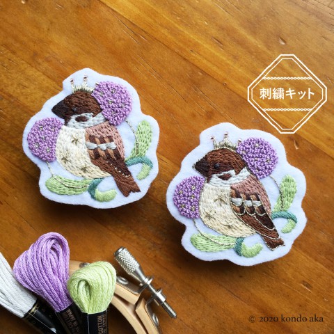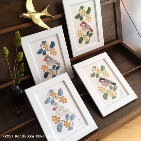 出展日 27日/28日/29日 出展内容 小物/刺繍/アクセサリー/文具/絵画/イラスト/インテリア雑貨/素材・材料 上の大きな画像をクリックすると、フルサイズで画像を見ることができます。 出展者コメント 透明水彩で描いた動植物のイラストからモチーフを切り取った刺繍作品を制作しています。 minneで好評販売中の刺繍キット「文鳥とミモザの額装」「スズメとギガンチュームのブローチ」そのほか、 刺繍作品やイラスト原画・画集・ステーショナリーグッズなど小鳥モチーフの作品を多数販売します。新作キットも予定しておりますので、ぜひ遊びにいらしてください(*´꒳`*) 最新情報・制作の様子・お品書きなどTwitterやインスタグラムで発信中です!【Twitter】イラストアカウント刺繍アカウント【Instagram】イラストアカウント刺繍アカウント刺繍以外の作品 ホームページ SNS URL https://twitter.com/suzume96296E https://www.instagram.com/kondo_aka_embroidery Twitter刺繍アカウント https://twitter.com/kondoaka_ito