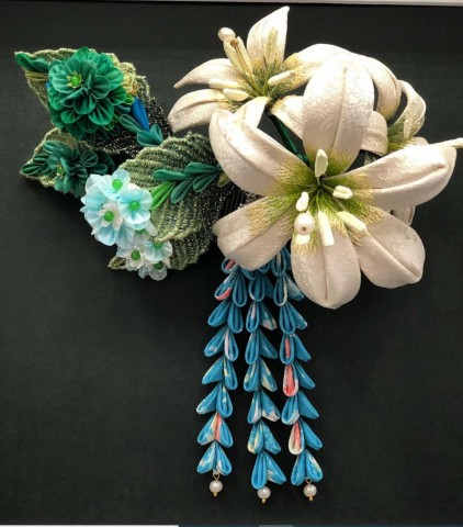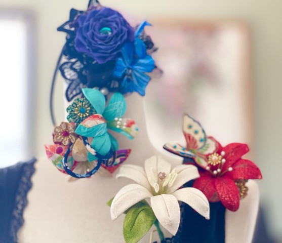 江戸の伝統工芸である「つまみ細工」の手法を用いて様々な材料を使い