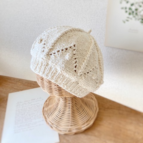 編み物で春夏に向けた帽子や、ブローチやヘアバンドなどを見ていただけたらと思っています。