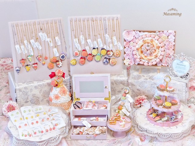 出展日 27日/28日/29日 出展内容 アクセサリー/ファッション雑貨 上の大きな画像をクリックすると、フルサイズで画像を見ることができます。 出展者コメント クレイスイーツアーティストの得田麻彩美と申します。Masamingというブランド名で活動しています。主に樹脂粘土を用いて、オリジナルのスイーツアクセサリーを作っています。ブランドコンセプト『プリンセスを夢みるオトナ女子のための、世界一ロマンティックなスイーツアクセサリー』 宝石のようにきらめくスイーツアクセサリーで、自分を幸せに、そして貴女が笑顔だと周りも幸せになります。そんな幸せの相乗効果が、世の中に溢れてほしい、 という想いを込めています。ネックレスやヘアアクセサリー、指輪、耳飾り等のアクセサリーや小物を販売予定です。コンテストで受賞した作品も展示予定です。ぜひブースまでお越しください。お待ちしております。 ホームページ SNS URL http://instagram.com/v_masaming_v http://twitter.com/v_masaming_v https://weibo.com/u/6028427968 minne http://minne.com/@v-masaming-v