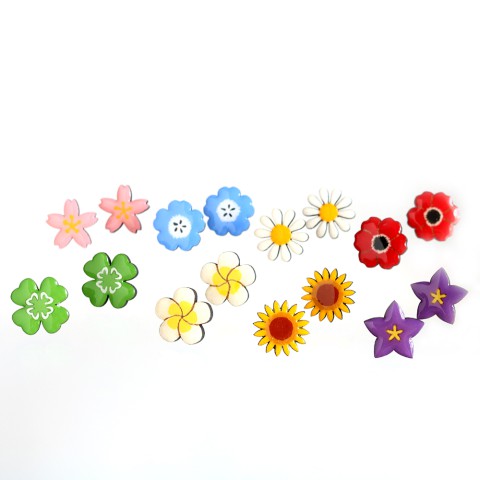 今回は、季節の草花のモチーフのピアス(イヤリング)をメインにお持ちします。