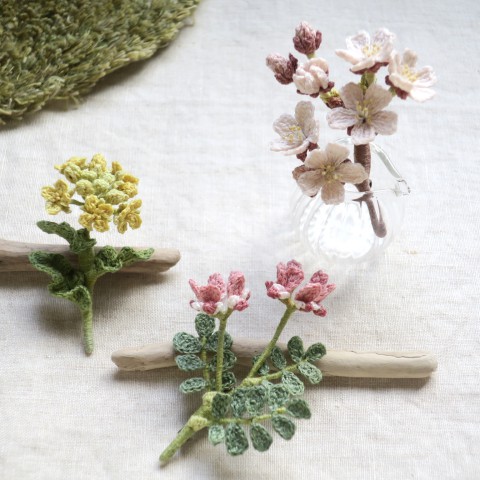 出展日 29日 出展内容 小物/アクセサリー/インテリア雑貨 上の大きな画像をクリックすると、フルサイズで画像を見ることができます。 出展者コメント こんにちは、Chi・Chiです。草木染めで糸を染め、かぎ針編みで編んで、季節を感じる草花をモチーフに作品を制作しています。花のかたち、葉っぱのかたち。おしべやがく。図鑑のように、細かいところまでていねいに作っています。さくらや菜の花、すみれ、たんぽぽ。春の花をたくさん用意してお待ちしております。 ホームページ SNS URL https://twitter.com/chichi_nonohana https://www.instagram.com/chichi_nonohana/ オンラインショップ「糸編み花屋」 https://itoamihanaya.theshop.jp/