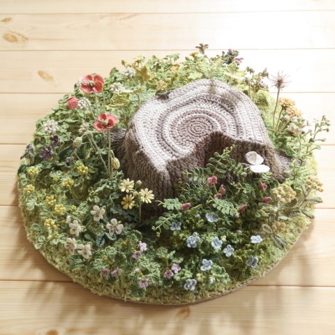 草木染めで糸を染め、かぎ針編みで編んで、季節を感じる草花をモチーフに作品を制作しています。