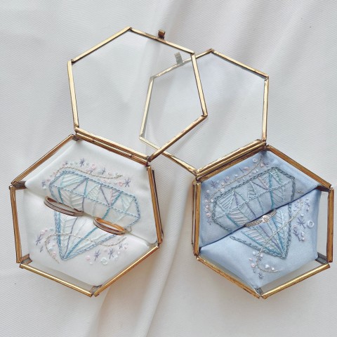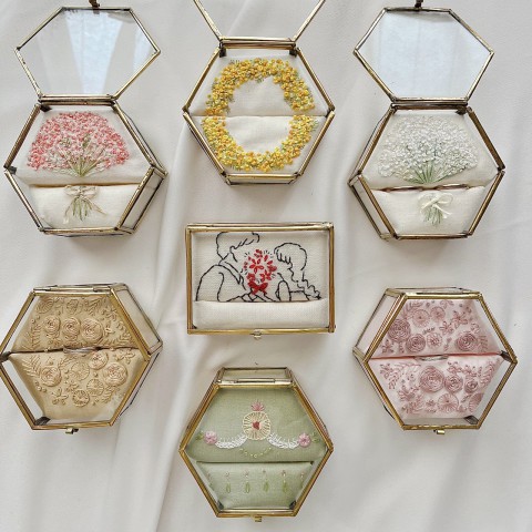 リングピローをはじめとする刺繍ウェディングアイテムを販売中です。